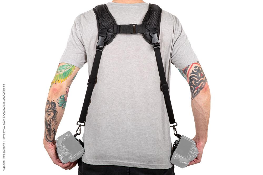 - Descrição: Alça Dupla com Engates de Segurança para Câmera DSLR Greika - Alça D - Código: Alça D - Material: Nylon - Cor: Preta - Tamanho ajustável - Peso: 300g