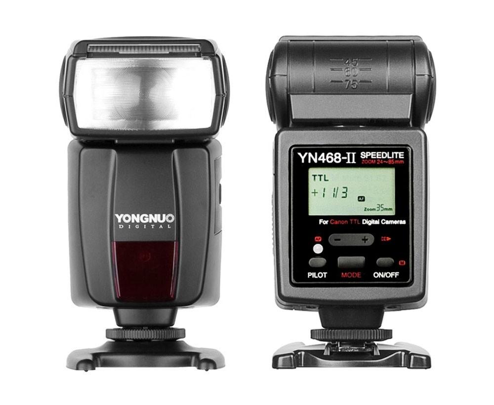 Ilumine acima de sua cena com o Speedlite YN468-II de YONGNUO, que oferece suporte dedicado para TTL E-II flash sistema de medição da Canon / E-TTL automático. A unidade simples, mas poderosa possui um número guia de 108 'em ISO 100 e 85 milímetros, juntamente com uma cabeça de zoom que pode cobrir de 24-85mm em full-formato, ou para baixo a 18mm com o difusor grande angular pull-out. A cabeça também oferece inclinação de -7 a 90 ° e pode girar 270 ° para a funcionalidade de rejeição.