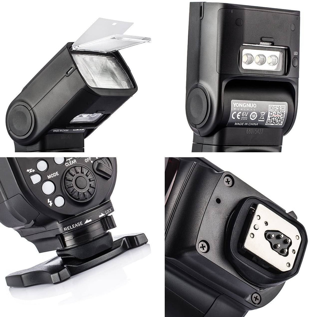 - Equipado com sistema de disparo de rádio de 2.4GHz compatível com Canon que permite que o YN968EX-RT funcione como um mestre TTL ou escravo com Canon 600EX-RT e YN-E3-RT, bem como Yongnuo YN600EX-RT e ST-E3-RT. O flash também pode funcionar como um escravo óptico com suporte para comunicação TTL dos sistemas Canon e Nikon.