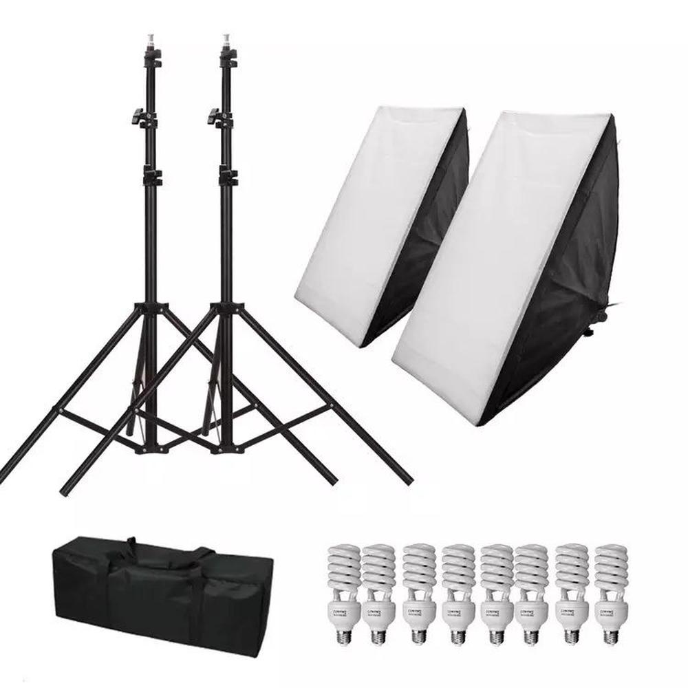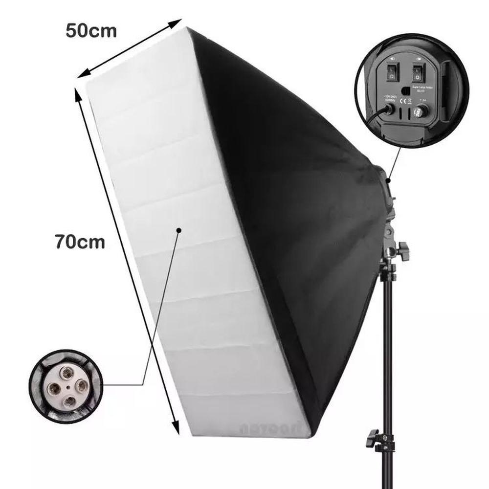 Proporciona iluminação adequada e perfeita, pois sua potência que chega até 1080W em cada softbox, possui um sistema no qual pode ser utilizado pela metade através da chave liga-desliga.